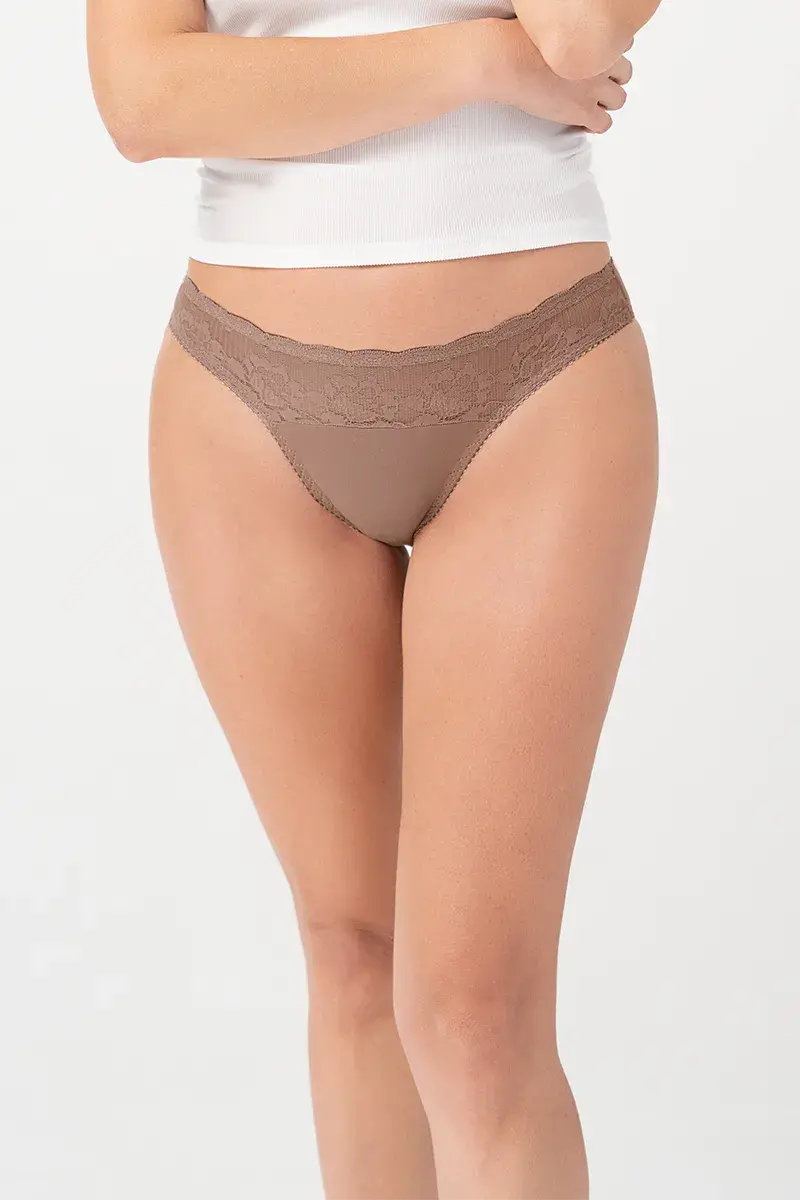 Tanga Con Un Cubrimiento Medio Y Refuerzo Interno En Algodón, La Cual Está Elaborada En Poliéster Elastano Y Encaje Elástico En Delantero.