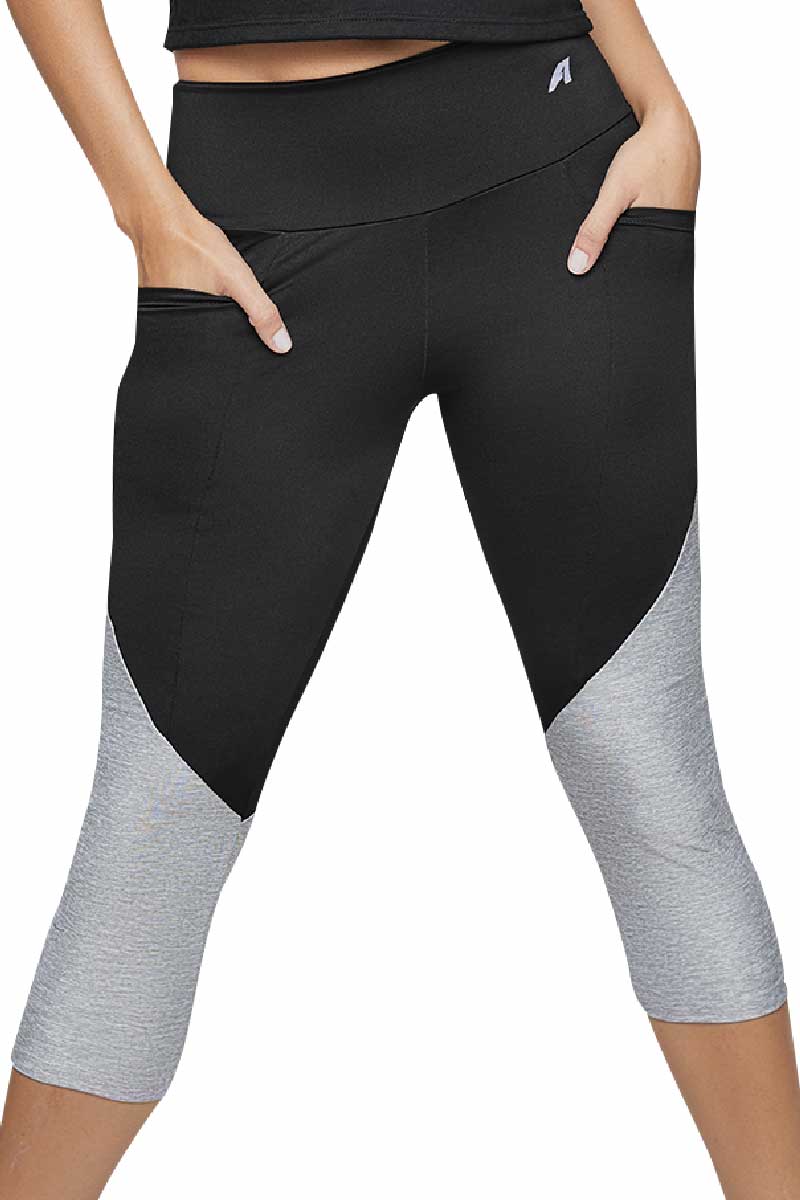 Capri Con Un Fajón Ancho Y Control De Abdomen Interno Junto A Unos Bolsillos Funcionales Laterales, El Cual Está Elaborado En Poliéster Lycra Y Power Net