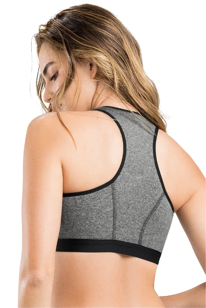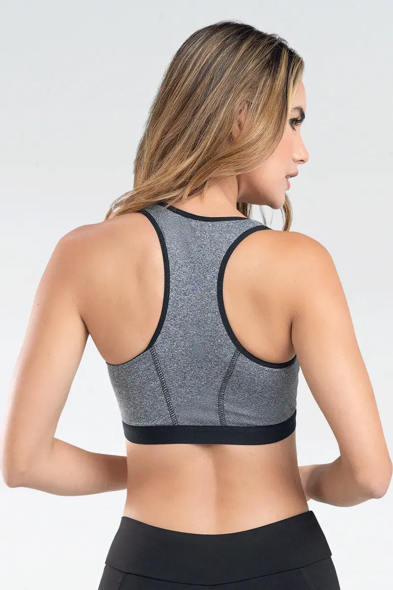 Top Deportivo Con Copas Internas Y Una Cremallera Funcional, Espalda Atlética Y Cargaderas Anchas En Espuma, El Cual Está Elaborado En Poliéster Elastano.